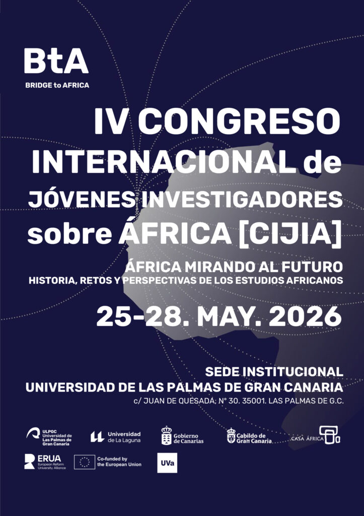 La Universidad de Las Palmas de Gran Canaria, en colaboración con la Universidad de Valladolid y el Observatorio de Estudios Africanos acogerá los días 26, 27 y 28 de mayo de 2026 el IV Congreso Internacional de Jóvenes Investigadores/as sobre África (CIJIA), un encuentro académico internacional que se consolida como espacio de referencia para el análisis, el debate y la producción de conocimiento sobre África y su diáspora.